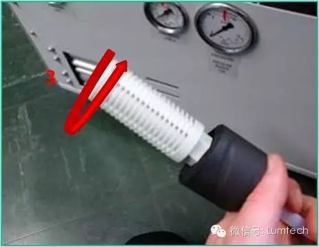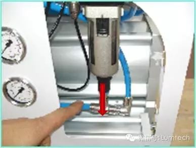 拆下過濾器外部連接管。向上按住街頭藍(lán)色部分,拔出連接管。