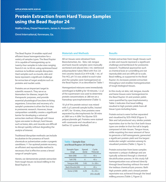 > Bead Ruptor24均質(zhì)勻漿器從硬組織樣品中提取蛋白質(zhì)