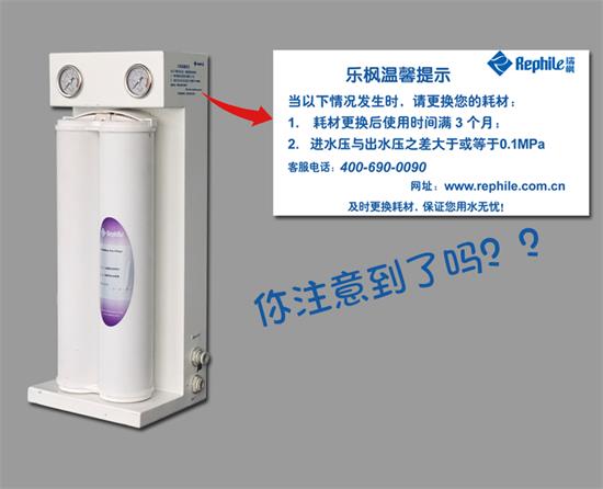 樂楓提供的純水系統(tǒng)RephiTEKT預(yù)過濾系統(tǒng)上貼有一個溫馨提示: