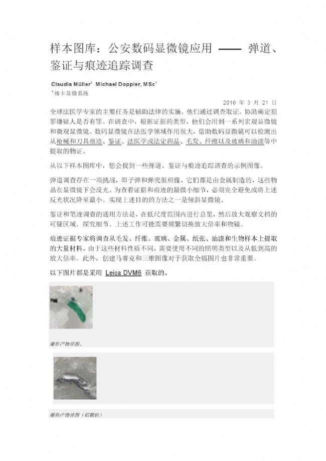 > 工業(yè)顯微鏡應用-DVM6用于公安彈道、鑒定與痕跡追蹤調(diào)查