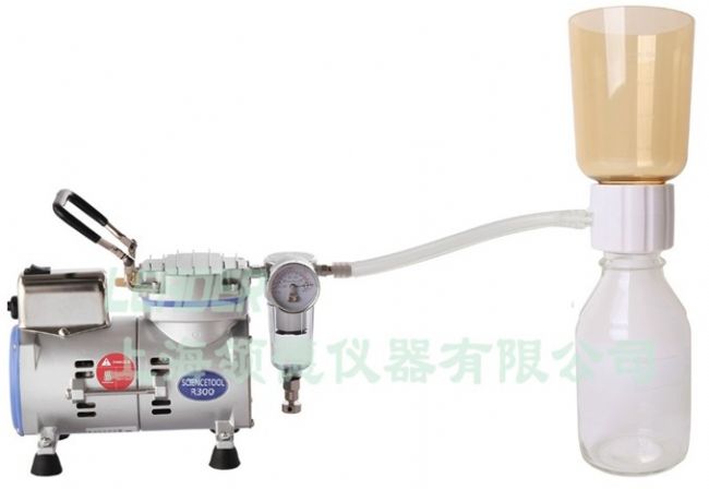 1)無油真空抽濾泵:用于將過濾瓶底部抽成負(fù)壓狀態(tài),從而與過濾瓶外部形成壓差。一般來說抽濾泵的金額占過濾裝置的大部分,有一些客戶在購買時(shí)為節(jié)省經(jīng)費(fèi)會咨詢能否不配置抽濾泵,因?yàn)樵谶^濾時(shí)濾膜孔徑很小會對液體產(chǎn)生極大阻力,所以如果沒有泵的主力,靠液體滲透濾膜幾乎是無法正常過濾的。所以抽濾泵對于過濾裝置是必不可少的一部分。