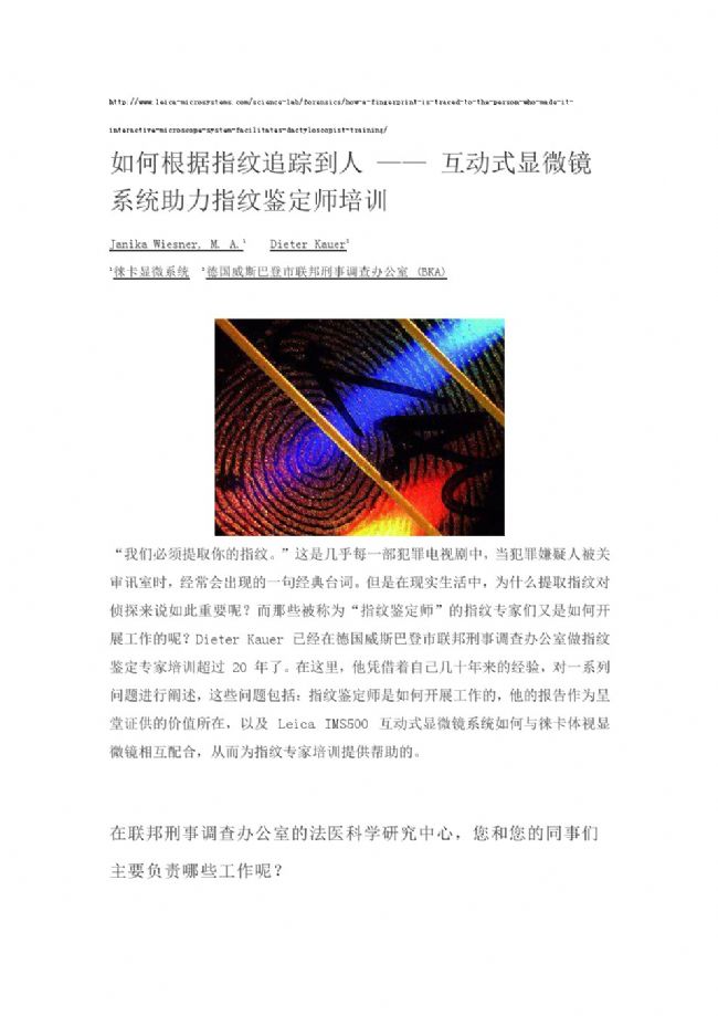 > 工業(yè)顯微鏡應(yīng)用-如何根據(jù)指紋追蹤到人 —— 互動(dòng)式顯微鏡系統(tǒng)助力指紋鑒定師培訓(xùn)