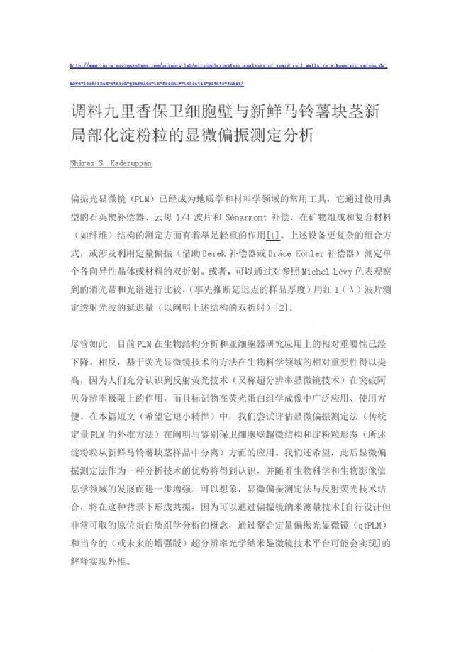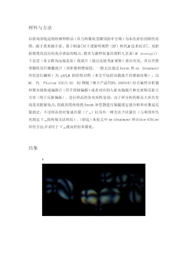 調(diào)料九里香保衛(wèi)細(xì)胞壁與新鮮馬鈴薯塊莖新局部化淀粉粒的顯微偏振測(cè)定分析