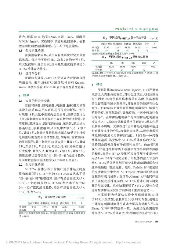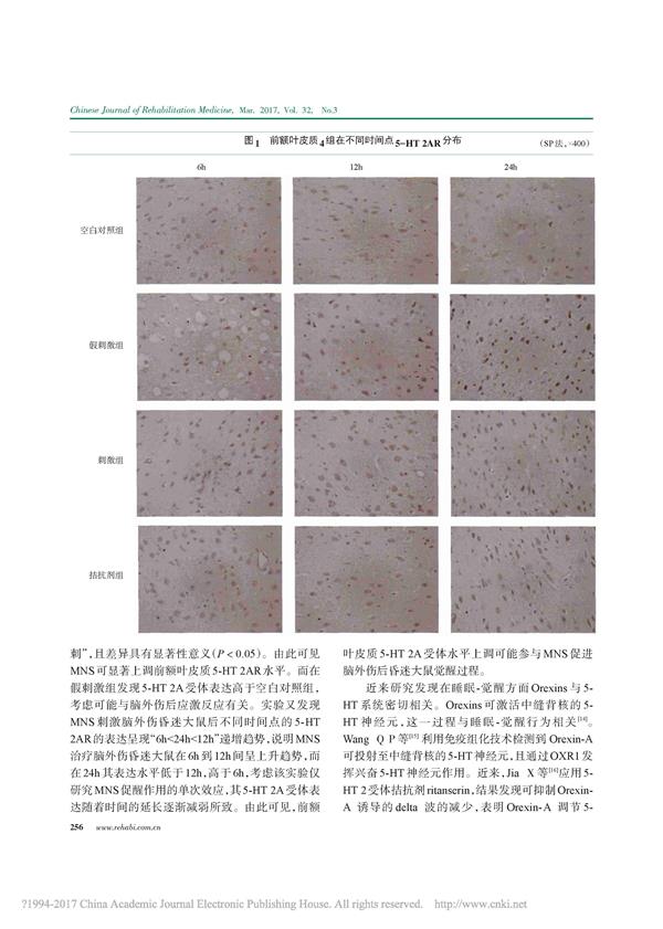 正中神經電刺激腦外傷昏迷大鼠前額_省略_質5_HT2A受體表達的實驗研究
