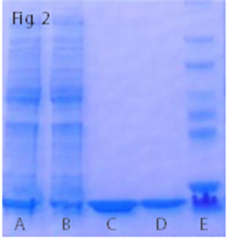 Fig.2. PurKine? His-Tag Ni-Super Resin能夠兼容多種的化學(xué)物 質(zhì):0.01M HCl (Lane C) ,0.01M NaCl (Lane D)