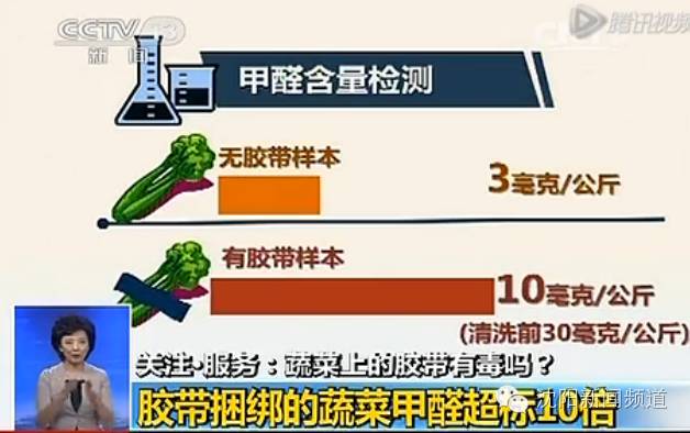 【摘要】你日常去超市買菜時(shí),是否注意到超市那些花花綠綠捆綁蔬菜的膠帶?可你知道么?超市里面捆扎蔬菜的膠帶,對(duì)人體絕對(duì)是有害的!近日央視曝光:看清楚!這樣捆綁的蔬菜甲醛超標(biāo)10倍,而且洗不掉的視頻,其測(cè)試結(jié)果出來(lái),在場(chǎng)人都驚呆了!與膠帶接觸的蔬菜部分甲醛竟超標(biāo)十倍!