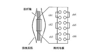 實(shí)驗(yàn)設(shè)備及參數(shù) 采用表面陣列電和 RM6280C 多道生理參數(shù)記錄儀記錄前臂淺屈肌(FDS)表面肌電信號(hào)及力量傳感器的輸出電壓,其中電是直徑2mm鍍金圓電組成的 各電中心距為3mm,沿肌纖維方向貼于前記錄儀信號(hào)采樣率設(shè)為2000 Hz。