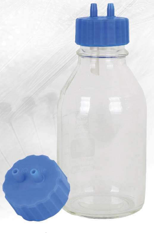 緩沖瓶:是一種非常經(jīng)濟(jì)的防倒吸手段,最大的優(yōu)點(diǎn)在于可以重復(fù)使用。例如圣斯特SB-4510緩沖瓶,使用特別設(shè)計(jì)、模具一體成型的兩孔吸液蓋(蓋子上有2個(gè)軟管接口),可以搭配實(shí)驗(yàn)室普通的藍(lán)蓋試劑瓶一起使用,便于后期更換自己需要的容量,具有很強(qiáng)的通用性。在使用緩沖瓶時(shí)只需要使用標(biāo)配的軟管,接在緩沖瓶蓋的2個(gè)接頭上,然后將一根軟管連接真空泵,另一根軟管連接過濾和吸液系統(tǒng)中原本標(biāo)配的集液瓶。倒吸液體吸入后可以打開瓶蓋倒出液體,清洗瓶體。非常方便,可以反復(fù)使用,經(jīng)濟(jì)型極高。但是緩沖瓶也無法徹底解決倒吸,如果客戶不及時(shí)清理緩沖瓶讓液位上升過高,亦或是使用不專業(yè)的瓶子自己改裝,內(nèi)部進(jìn)液口和吸氣口距離太近仍然無法避免倒吸。所以一方面客戶應(yīng)當(dāng)使用專業(yè)設(shè)計(jì)的緩沖瓶,另一方面可以考慮使用阻水過濾器來作為緩沖瓶的補(bǔ)充。