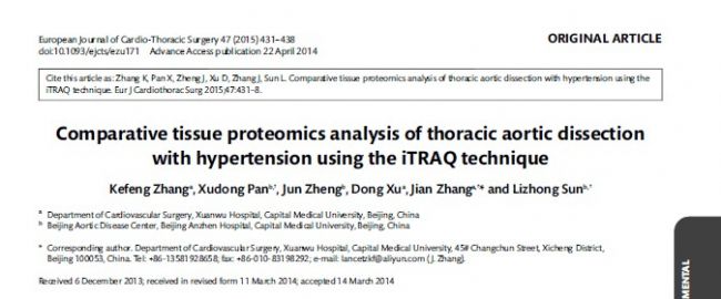 這篇文章主要通過1V1的iTraq尋找到36個主動脈夾層病人(13例)和正常人(13例)之間差異表達的蛋白。