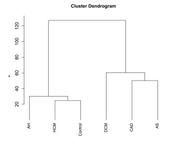 通過生物信息學分析,作者發(fā)現(xiàn)跟每心血管疾病相關的一些廣譜蛋白,而這些蛋白都可以作為潛在的診斷方向的biomarker。另外,通過統(tǒng)計建模的方法,作者還將幾種疾病大致分為兩類病理生理學過程。