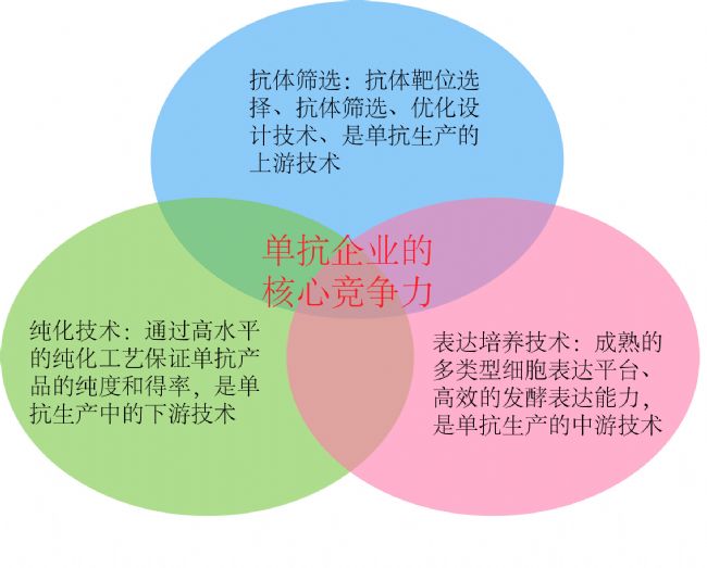 總的來說,一個單抗藥物企業(yè)需要具有上游的研發(fā)平臺篩選出理想的單抗藥物;并且有高效大規(guī)模的進行發(fā)酵培養(yǎng)表達單抗;還需要能夠高效、高純度的分離純化單抗,這樣的公司才具有單抗研發(fā)生產的核心競爭力。