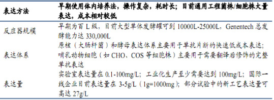 2、表達培養(yǎng)技術是單抗產量形成和質量控制的關鍵,表達方法、反應器規(guī)模、表達體系和表達量是判斷企業(yè)技術水平高低的重要指標。
