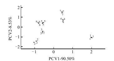 圖3 7種不同甜面醬樣品Smartongue電子舌主成分分析圖