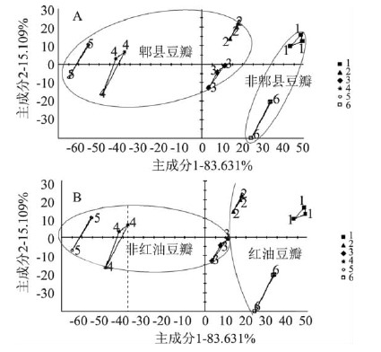 圖4 豆瓣樣品的Smartongue電子舌主成分分析圖