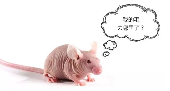不知誰(shuí)把我們的毛弄哪去了,出生后一直不長(zhǎng)毛。先天性免疫缺陷,沒(méi)有胸腺、T細(xì)胞缺陷。自發(fā)的疾病,怪不了誰(shuí)。生長(zhǎng)發(fā)育不好,繁殖力當(dāng)然比不上健康的小鼠,雖有正常的B淋巴細(xì)胞,但功能缺陷,所以一直被當(dāng)做人類腫瘤、免疫缺陷疾病研究的模型使用。在免疫缺陷小鼠中資歷最高。
