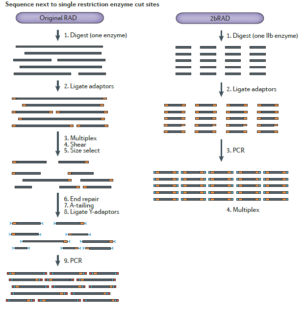 10) original RAD(original restriction-site associat­ed-DNA):限制性酶單酶切+機(jī)械打斷建庫(kù)測(cè)序;