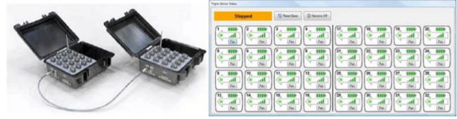 此配置可實(shí)現(xiàn)32肌電通道和96加速度計(jì)通道的數(shù)據(jù)捕捉。通過(guò)直觀的圖示界面可實(shí)時(shí)監(jiān)控每個(gè)傳感器的狀態(tài)(電池電壓、信號(hào)強(qiáng)度、網(wǎng)絡(luò)連接)。雙系統(tǒng)不僅可用于肌電系統(tǒng),也能用于模擬輸出和第三方數(shù)據(jù)采集系統(tǒng)。