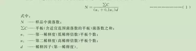 2 若有兩個(gè)連續(xù)稀釋度的平板菌落數(shù)在適宜計(jì)數(shù)范圍內(nèi)時(shí),按式( 1 )計(jì)算: