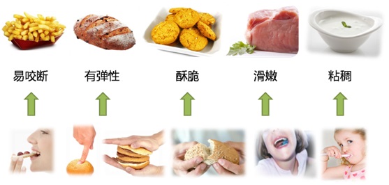 接下來(lái),想想我們是如何感覺(jué)到這些特性的。當(dāng)用門(mén)齒咬斷薯?xiàng)l的時(shí)候,我們發(fā)現(xiàn)它們是很容易被切斷的;當(dāng)用手去按壓面包、捏橡皮糖的時(shí)候,我們會(huì)感覺(jué)到很有彈性;當(dāng)掰開(kāi)一塊餅干的時(shí)候,我們會(huì)發(fā)現(xiàn)它很酥脆;當(dāng)咀嚼三分熟的牛排時(shí),我們會(huì)感受到它的滑嫩;當(dāng)攪動(dòng)酸奶的時(shí)候,我們會(huì)發(fā)現(xiàn)它的粘稠,等等。