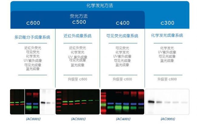 Azure c 系列成像系統(tǒng)提供 4 款性能卓越的 Western blot 成像系統(tǒng)?梢赃x擇滿足現(xiàn)有實驗需求的型號,當(dāng)需要提升應(yīng)用范圍時,通過升級即可完成