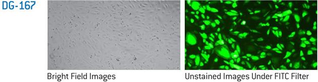 圖1. HUVEC細(xì)胞轉(zhuǎn)染GFP質(zhì)粒,轉(zhuǎn)染效率約為82%,對細(xì)胞形態(tài)無明顯影響: