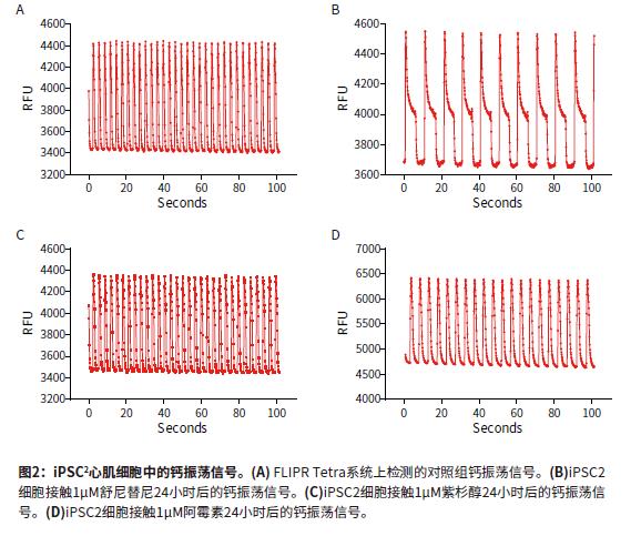 iPSC2心肌細(xì)胞可實(shí)現(xiàn)在細(xì)胞解凍后的4 - 5天內(nèi),而不是10 - 14天進(jìn)行實(shí)驗(yàn),從而改善了在FLIPR Tetra系統(tǒng)上進(jìn)行篩選檢測的工作流程。ScreenWorks Peak Pro軟件模塊可以通過對鈣振蕩信號的記錄和分析,非常便捷地證實(shí)化合物對心肌細(xì)胞的效應(yīng),是藥物篩選過程中的有效工具。這樣的試驗(yàn)可以在藥物開發(fā)早期進(jìn)行,有助于在進(jìn)入先導(dǎo)化合物開發(fā)流程之前發(fā)現(xiàn)可能對心臟產(chǎn)生不利或有益影響的化合物。