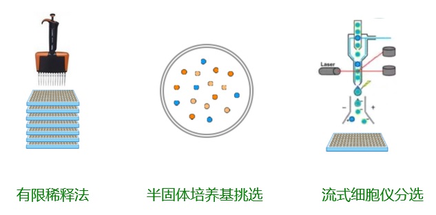 傳統(tǒng)的有限稀釋法:操作繁瑣,時(shí)間周期長,單克隆率低,鋪板時(shí)無法挑選高產(chǎn)細(xì)胞。