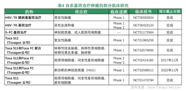 Tocagen公司的Toca 511和Toca FC聯(lián)合療法獲FDA孤兒藥地位授權(quán),用于治療惡性膠質(zhì)瘤。在該聯(lián)合療法中,Toca 511是一種逆轉(zhuǎn)錄病毒復制載體,可將胞嘧啶脫氨酶(CD)的基因選擇性地遞送入癌細胞。在Toca511遍布腫瘤后,可表達CD基因的癌細胞就能將氟胞嘧啶(5-FC)轉(zhuǎn)化成抗癌藥物5-氟尿嘧啶(5-FU),進而介導腫瘤細胞程序性死亡,并增強機體對腫瘤的免疫應答。Toca 511和Toca FC聯(lián)合療法于2015年開展II期和III期臨床試驗,根據(jù)臨床中期報告顯示,經(jīng)聯(lián)合治療后,惡性膠質(zhì)瘤患者中期存活率達到13.8個月,優(yōu)于7個月的中期存活率歷史基準點,表現(xiàn)出較好的臨床療效。