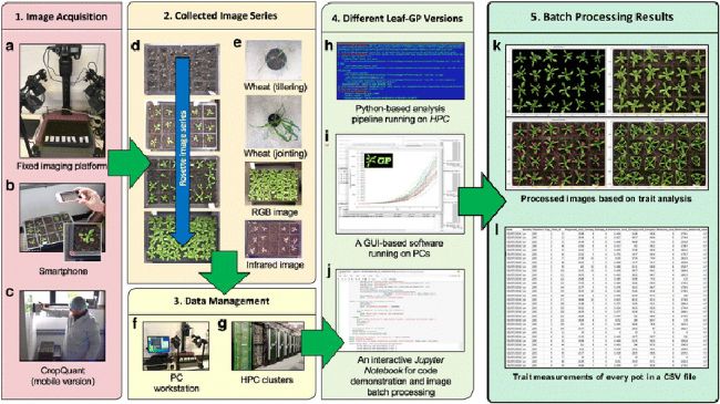 作者介紹Leaf-GP(Growth Phenotypes),一個易用且開放的軟件應(yīng)用程序,可以在不同的計算平臺上執(zhí)行。能夠從大型圖像數(shù)據(jù)集中自動提取多種生長性狀。該軟件已經(jīng)在諾維奇研究公園(NRP,UK)的擬南芥和小麥(Triticum aestivum)生長研究中得到運(yùn)用。隨著時間的推移,通過量化一些生長表型,作者已經(jīng)在幾個實驗條件下鑒定出不同基因型之間的不同植物生長模式。