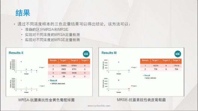 從上述結果可以得出結論:通過三個特異性的探針識別出兩類形態(tài)相近的葡萄球菌,并根據抗性基因進行抗性分析和定量,相較于傳統(tǒng)的培養(yǎng)方法,結果特異性、重復性好,獲得結果更為快速。同時Naica crystal數字PCR系統(tǒng)的自動集成化程度,確保該方法降低人為干擾,實現方法的流程化和標準化。