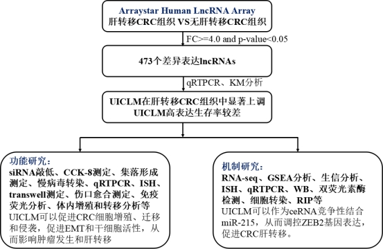 本研究通過lncRNA芯片篩選出與CRC肝轉(zhuǎn)移相關(guān)的lncRNAs,并通過大量的功能實驗研究異常表達的lncRNA如何調(diào)控結(jié)直腸癌的肝轉(zhuǎn)移。