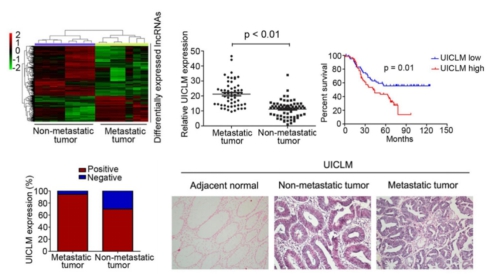中山大學(xué)附屬腫瘤醫(yī)院院長、主任醫(yī)師徐瑞華教授長期從事消化道腫瘤個體化治療領(lǐng)域及抗癌藥物研究,在消化道腫瘤的轉(zhuǎn)移與轉(zhuǎn)歸、化療藥物耐受及其機制和優(yōu)化臨床治療方面具有國際領(lǐng)先的創(chuàng)新性成果。近期,該課題組應(yīng)用Arraystar lncRNA芯片在肝轉(zhuǎn)移的結(jié)直腸癌組織中分析了lncRNAs的表達情況。課題組篩選到與結(jié)直腸癌肝轉(zhuǎn)移顯著相關(guān)的lncRNA UICLM,并闡明了lncRNA UICLM在結(jié)直腸癌肝轉(zhuǎn)移中的功能和調(diào)控機制。該研究成果于2017年發(fā)表在國際著名學(xué)術(shù)期刊Theranostics(IF = 8.766)上。(芯片實驗由康成生物提供技術(shù)服務(wù))