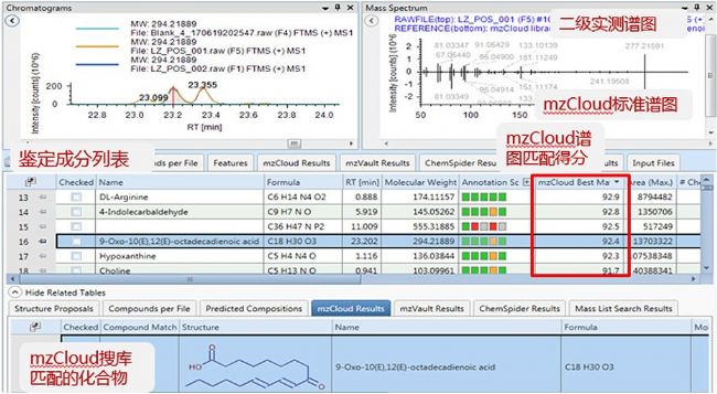 新版的CompoundDiscoverer軟件到底有多強(qiáng)呢?它可基于MS1 精細(xì)同位素匹配模式和 MS2 數(shù)據(jù)對未知成分進(jìn)行精準(zhǔn)預(yù)測,還可基于用戶自定義的碎片做相似結(jié)構(gòu)化合物組的搜索,并且可以鏈接到mzCloud云譜庫(圖4),mzVault本地譜庫,Chemspider進(jìn)行未知成分的鑒定。CompoundDiscoverer軟件最方便的地方在于可基于母核結(jié)構(gòu)自動給出未知成分的參考結(jié)構(gòu)信息(圖5),即使是新手也可輕松給出置信的鑒定結(jié)果!