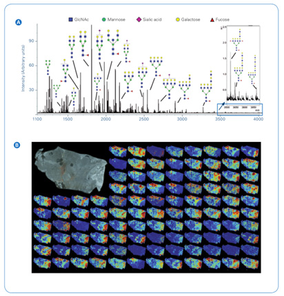 近期,南卡羅萊納醫(yī)科大學(xué)-細胞與分子藥理學(xué)&實驗治療學(xué)部發(fā)布了一篇基于MALDI FTMS成像技術(shù)的癌變生物標(biāo)記物N-聚糖的研究。該研究中利用了超高分辨、超高靈敏度的solariX MALDI FTMS質(zhì)譜平臺,通過對福爾馬林固定石蠟包埋(FFPE)組織中的N-聚糖進行質(zhì)譜成像分析,確定了N-聚糖為組織癌變生物標(biāo)志物。