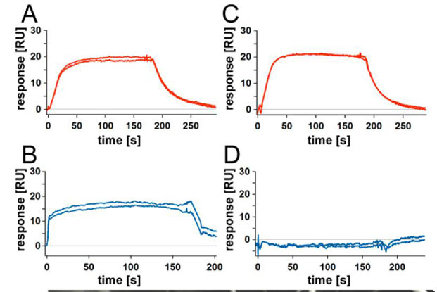 SPR分析結(jié)合位點(diǎn) 為了探究被檢復(fù)合物是否在活化位點(diǎn)結(jié)合,進(jìn)行了利用SPR技術(shù)的結(jié)合實(shí)驗(yàn)。