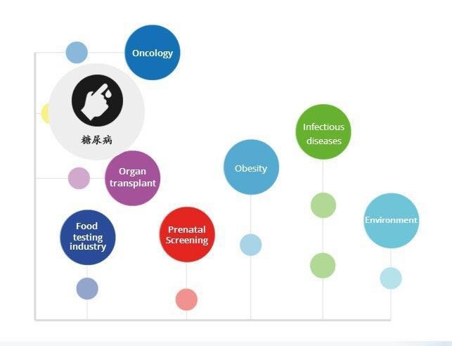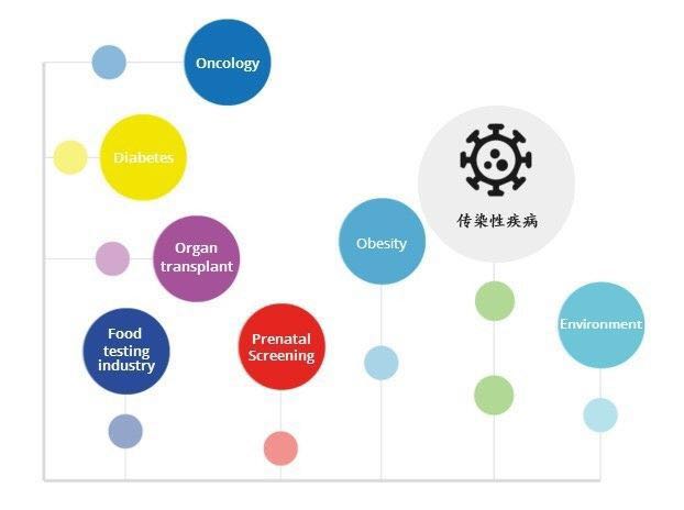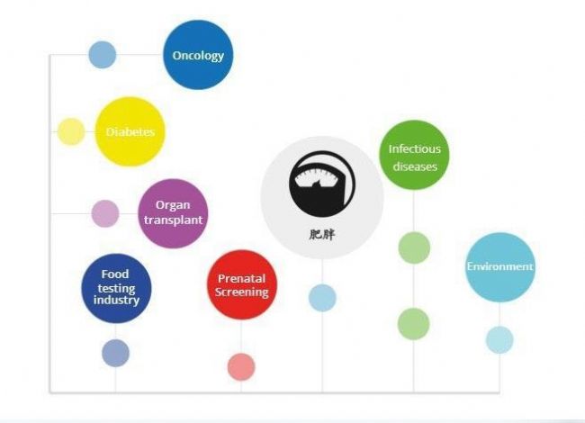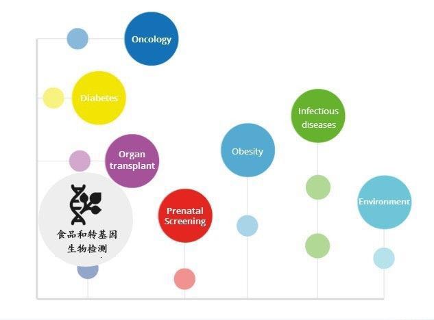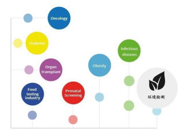 作為靈敏度最高的分子生物學(xué)工具,能夠準(zhǔn)確地區(qū)分低于2倍的濃度差異,并提高高背景內(nèi)源基因中目標(biāo)分子的分辨能力(如母體DNA為內(nèi)源基因和胎兒DNA為目標(biāo)己分子),在如下領(lǐng)域中都有廣泛的應(yīng)用: