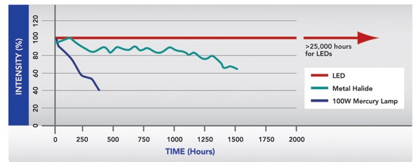 壽命對(duì)比,LED 25000小時(shí)以上