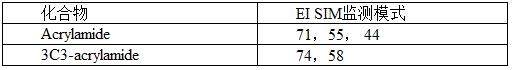 ⦁ 拓展標準,由于前處理采用衍生化方法,步驟繁瑣,引入誤差大,嘗試非衍生的前處理方法,GCMS采用EI SIM監(jiān)測模式,監(jiān)測離子見下表: