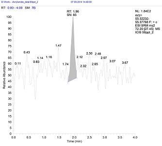 圖1:0.05ppb丙烯酰胺提取離子質譜圖