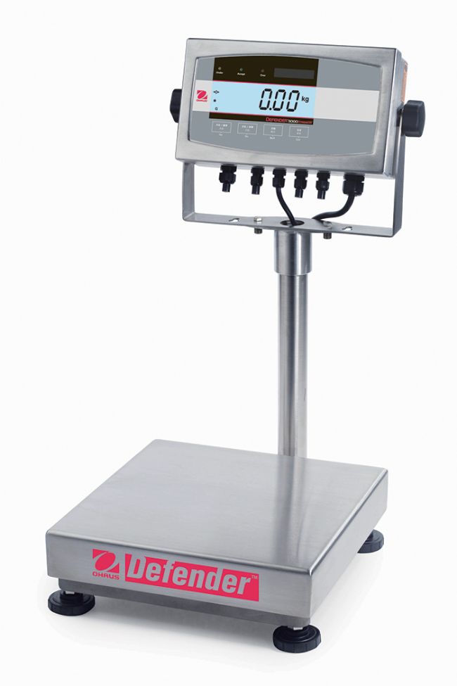 奧豪斯Defender5000電子臺秤配置IP67認(rèn)證的鋁制傳感器,并使用碳鋼噴塑秤體。