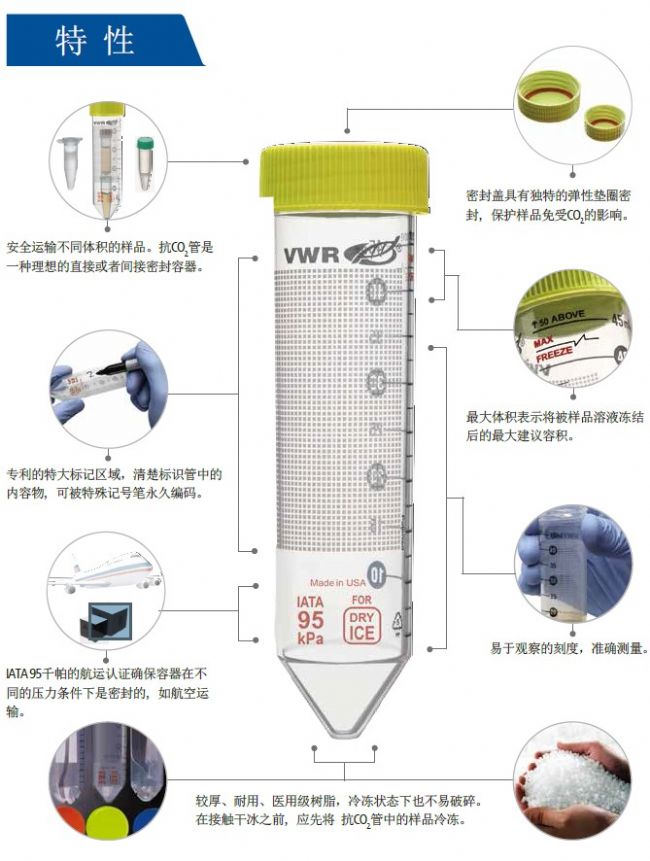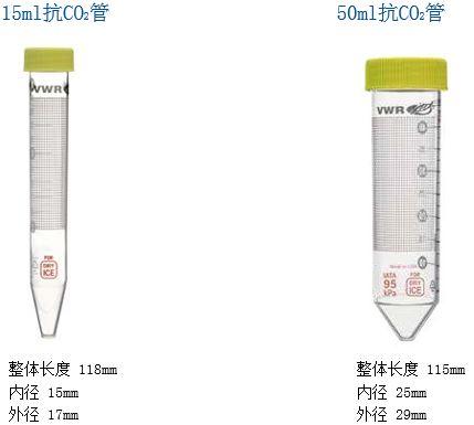 目前,VWR為您提供兩種規(guī)格的抗CO2管,容量分別是15ml和50ml,讓我們一睹為快