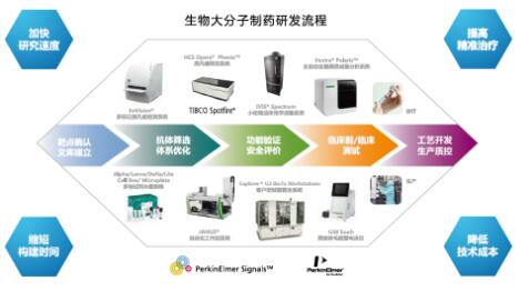 在藥物研發(fā)方向,生物大分子藥物市場(chǎng)高度集中,巨頭壟斷地位“超然”,而同時(shí)生物制藥市場(chǎng)也孕育著諸多新機(jī)會(huì)和變化,新靶點(diǎn)、新作用機(jī)制的抗體藥層出不窮,研發(fā)企業(yè)在生物制藥領(lǐng)域大有可為。針對(duì)生物大分子制藥研發(fā)流程的每一個(gè)環(huán)節(jié),PerkinElmer公司可提供覆蓋分子-細(xì)胞-活體-組織的全方位檢測(cè)技術(shù)、儀器平臺(tái)、試劑耗材及相關(guān)服務(wù)。