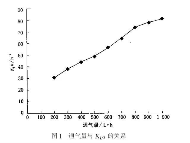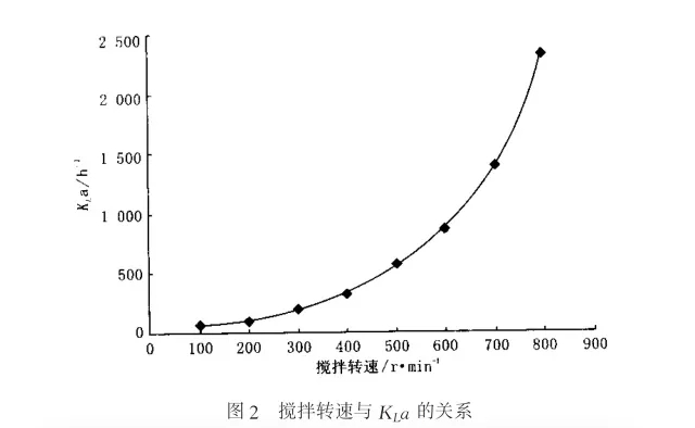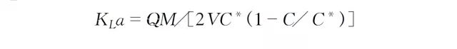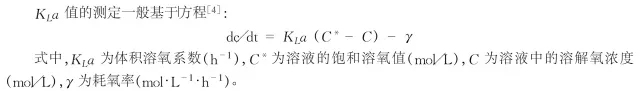 隨耗氧劑的不斷加入,反應(yīng)器中的溶解氧被消耗,溶氧值下降,從而形成反應(yīng)器內(nèi)液相的傳氧推動(dòng)力。處于連續(xù)培養(yǎng)穩(wěn)態(tài)時(shí),反應(yīng)液中的溶 氧濃度恒定不變,即dc/dt為零,所以此時(shí)供氧與耗氧相等。從而經(jīng)過(guò)公式轉(zhuǎn)變,得到KLa的計(jì)算公式: