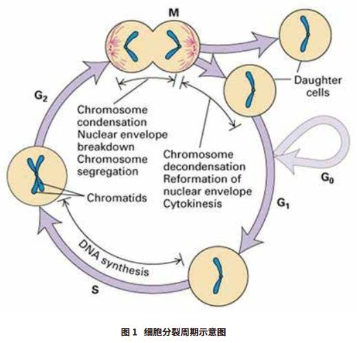 細(xì)胞周期分為間期與分裂期兩個(gè)階段。間期又分為三期:即 DNA 合成前期 ( G1 期 )、DNA 合成期 ( S 期 ) 與 DNA 合成后期 ( G2 期 )。某些細(xì)胞在分裂結(jié)束后暫時(shí)離開細(xì)胞周期,停止細(xì)胞分裂,執(zhí)行一定生物學(xué)功能 ( G0 期 )。