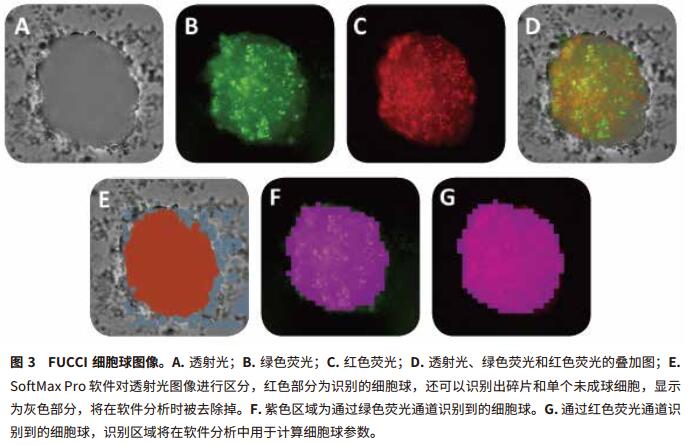 A375S FUCCI 球體準(zhǔn)備的方法如下:Corning 公司 96 孔 U 型底低吸附細(xì)胞培養(yǎng)板中加入含有 EGF (20 ng / mL) 和 B27 (1×)的 DMEM / F 12 培養(yǎng)基,按每孔 1,000 細(xì)胞進(jìn)行種板。細(xì)胞板離心 (800 g,6 min) 后在 37 ℃,5% CO2條件下進(jìn)行孵育。最后,用含 10% FCS 的培養(yǎng)基清洗球體 3 次以移除 EGF 和 B27,繼續(xù)培養(yǎng) 1 至 6 天。