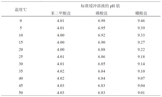 以上三種標(biāo)準(zhǔn)緩沖溶液的pH值隨溫度變化而稍有差異,見下表: