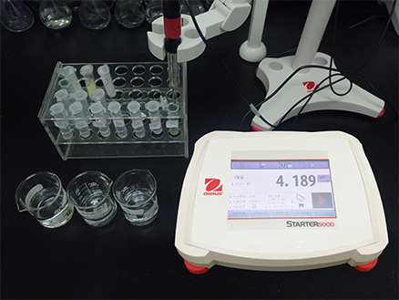 第三步,pH計(jì)校準(zhǔn):使用奧豪斯瓶裝pH=4.01、pH=6.86、pH=9.18三種標(biāo)準(zhǔn)緩沖溶液、對(duì)ST5000儀表進(jìn)行三點(diǎn)校準(zhǔn)。