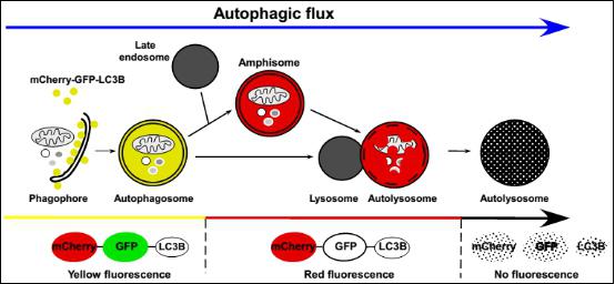 圖3 mCherry-GFP-LC3B雙標(biāo)系統(tǒng)工作原理