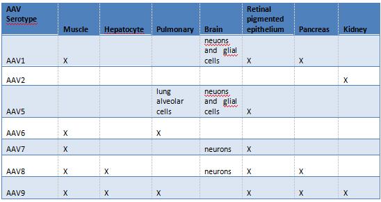 目前為您提供的AAV 血清型為AAV1,AAV2,AAV5,AAV7,AAV6,AAV8 & AAV9。請(qǐng)參閱下面指南中參考文獻(xiàn)的建議。