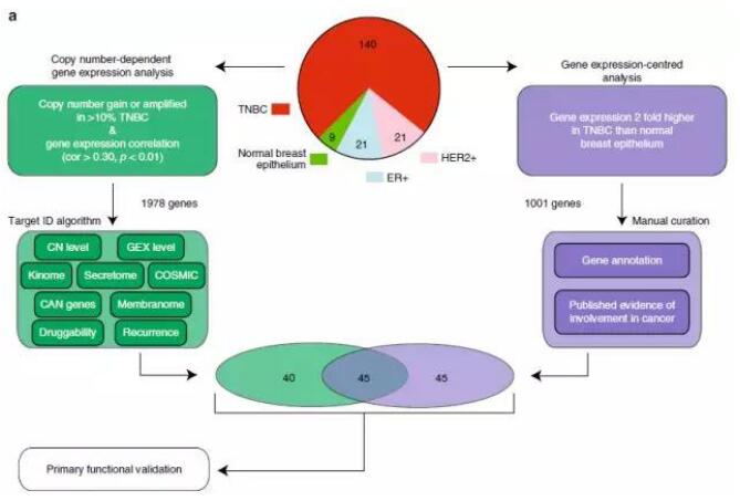 Nirmech Patel等人2018年Nature communication雜志上,結(jié)合整合基因組學(xué)、RNAi技術(shù)和功能型驗(yàn)證,在乳腺癌和非惡性細(xì)胞上對(duì)130多個(gè)潛在基因研究發(fā)現(xiàn),有13個(gè)基因簇通過(guò)影響細(xì)胞周期檢驗(yàn)點(diǎn)、DNA損傷應(yīng)答和惡性細(xì)胞選擇性分裂上調(diào)“三陰性”乳腺癌發(fā)病傾向。其中KIFC1驅(qū)動(dòng)蛋白作為高選擇性的惡性細(xì)胞靶標(biāo),通過(guò)順鉑化療與KIFC1聯(lián)合協(xié)同效果的研究結(jié)果進(jìn)一部表明,KIFC1最有潛力成為新型藥物靶點(diǎn)。[4]